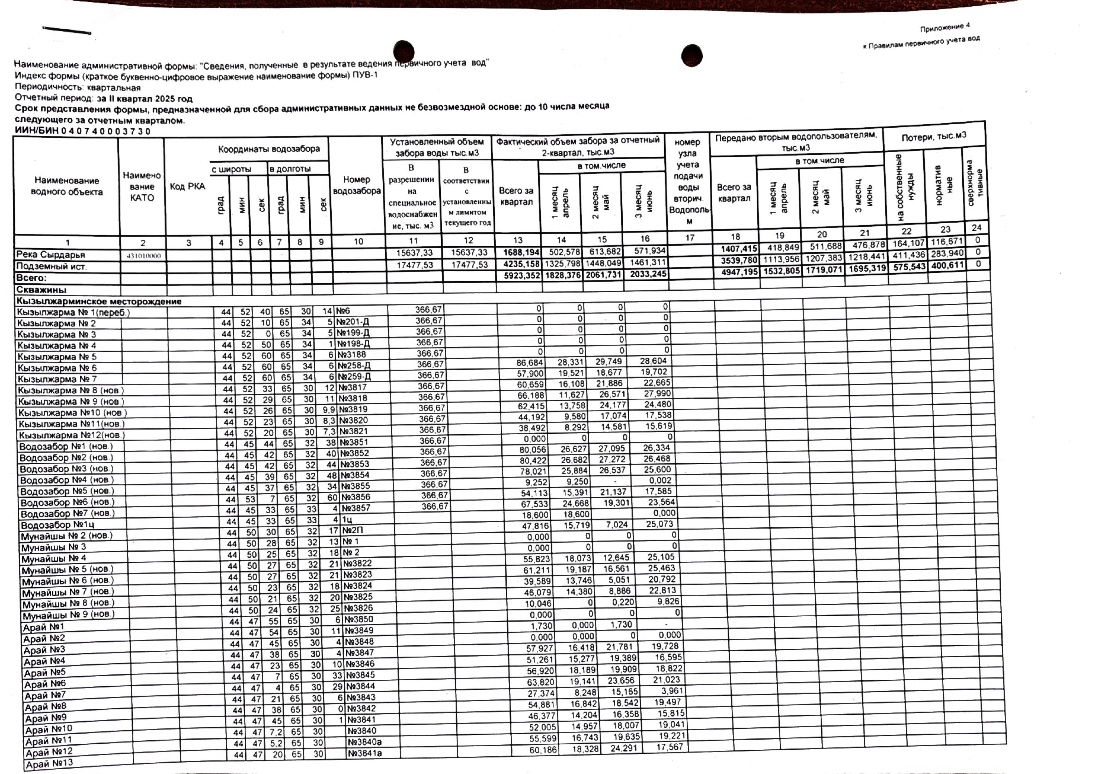 2025 жылғы IV-тоқсанға ауыз су және кәріз жүйесінің сызбасы
